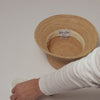 Inside view of a straw hat showing foam hat filler for snug fit.